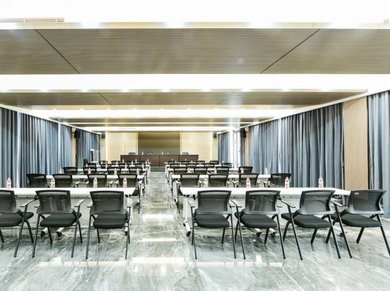 開敞明亮的會議空間,配備可移動的長條桌,簡約大方且方便實用,符合商業、培訓開展等輕辦公需求。